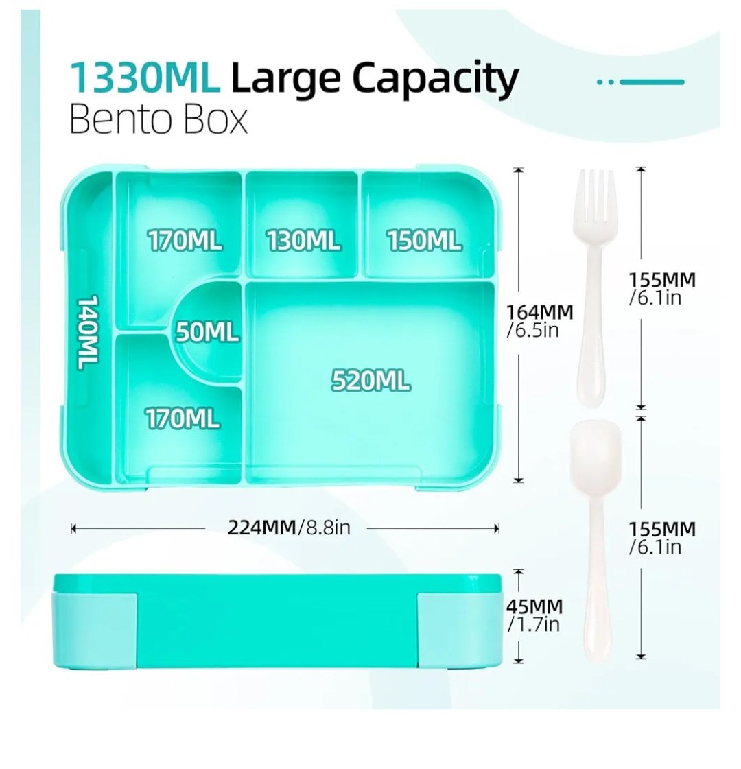 لانش بوكس أخضر فاتح مع ملعقة و شوكة و علبة صوص