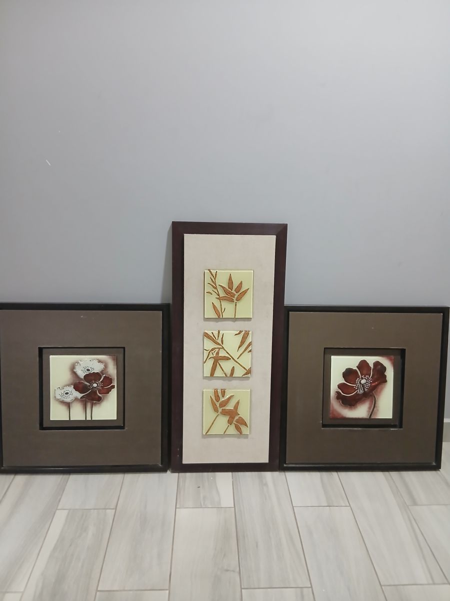 طقم يتكون من ثلاث لوحات لوحتين منهما طولها ٦٥ سم و عرضها ٦٥ سم و لوحة طولها ٩٦ سم وعرضها ٤٢ سم لوحات مستخدمة قابل للتفاوض
